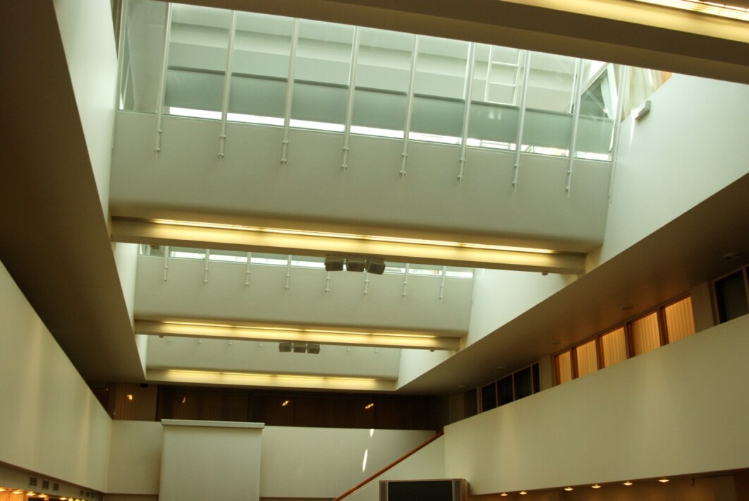 También me hice consciente ese día que el plafón como piel interna, semi-independiente de la externa, es instrumento esencial para Aalto. Re-configura el espacio y encierra las fuentes de la «otra luz».
