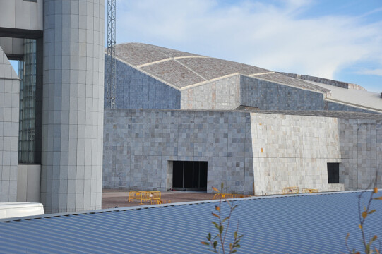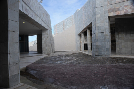 El tamaño será la coartada de Peter Eisenman y de los que impulsaron la construcción de la Ciudad de la Cultura para ocultar lo que ella es: una torpe equivocación. Los enormes planos alabeados cubiertos de piedra, como evento visual singular, siempre impresionarán. El simple hecho de construirlos desparramándolos en un paisaje cargado de posibles reminiscencias, aunque no tuvieran nada debajo, ya los convierte en escultura con vocación de permanencia. Su contemplación será gratificante, sobre todo si uno se olvida de lo demás y decide no darle importancia a las desproporcionadas fachadas cruzadas de grafismos irrelevantes.