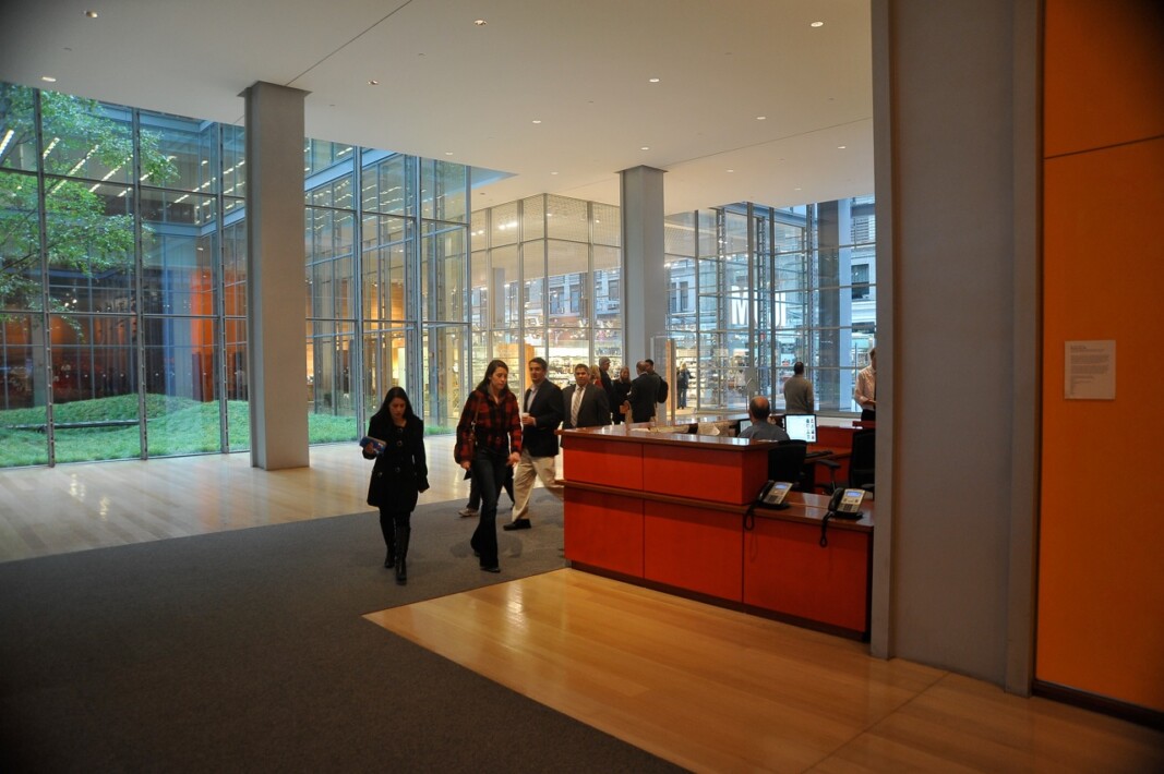 Esa idea de aproximar, de acercar el edificio a la calle, sigue el alineamiento preponderante, pero hace preguntarse si es imposible en Nueva York que un edificio corporativo pueda aceptar que la Planta Baja ceda espacio a la ciudad tal como lo hizo en su momento el Seagram de Mies Van der Rohe (1958) que en Park Avenue rompió con los alineamientos de un modo radical, creando una plaza que ha venido a convertirse en su distinción más notoria.