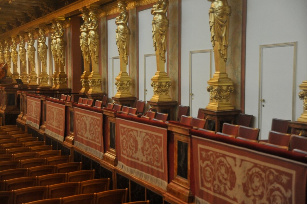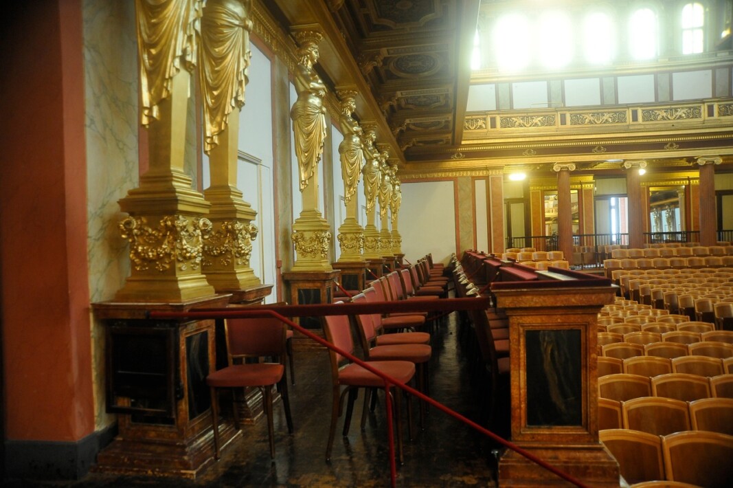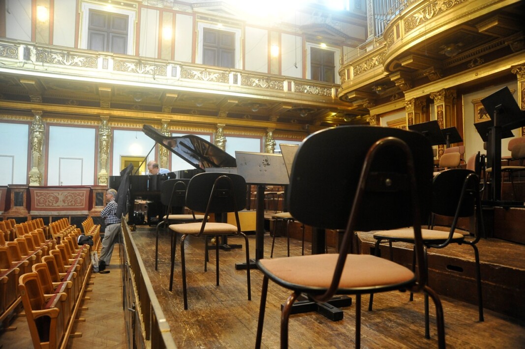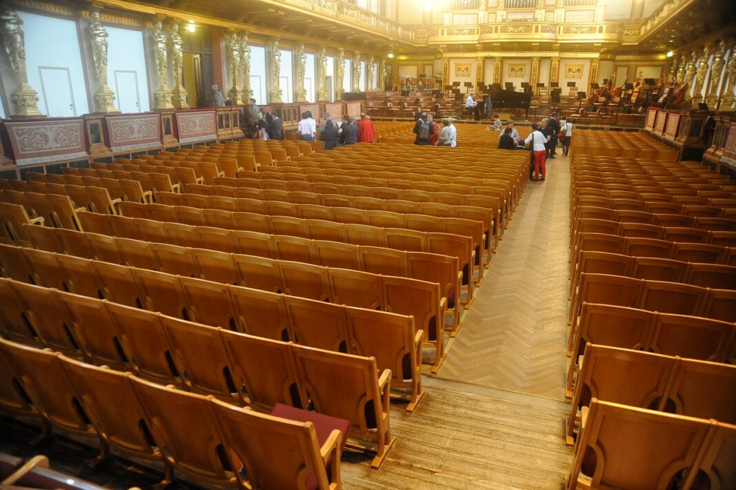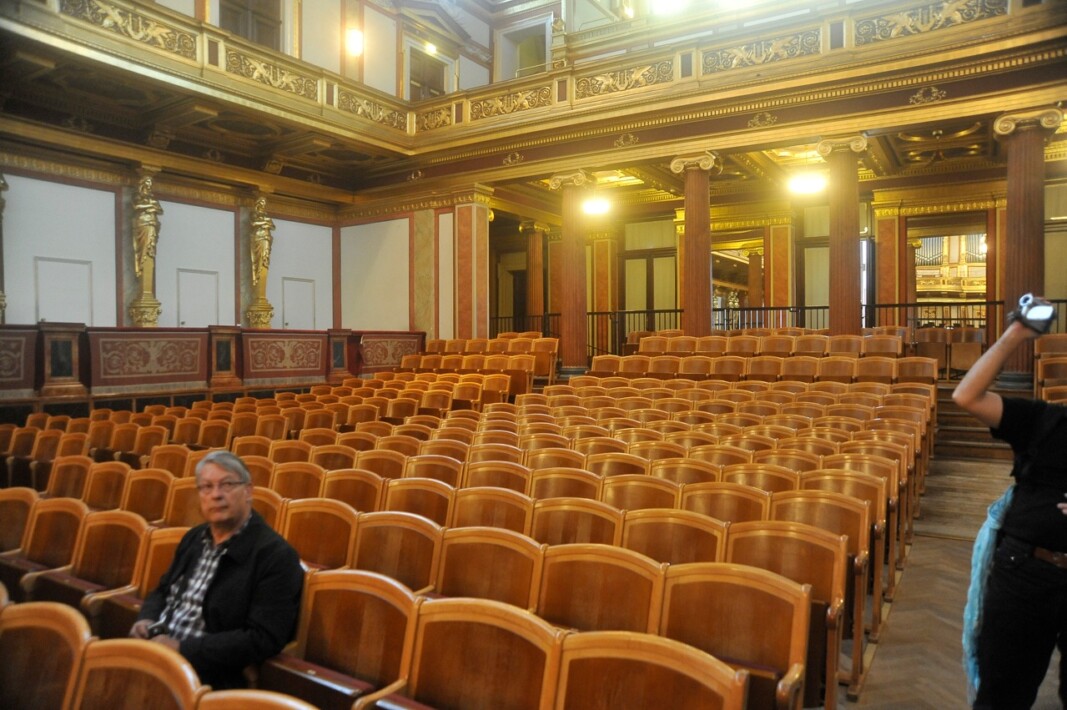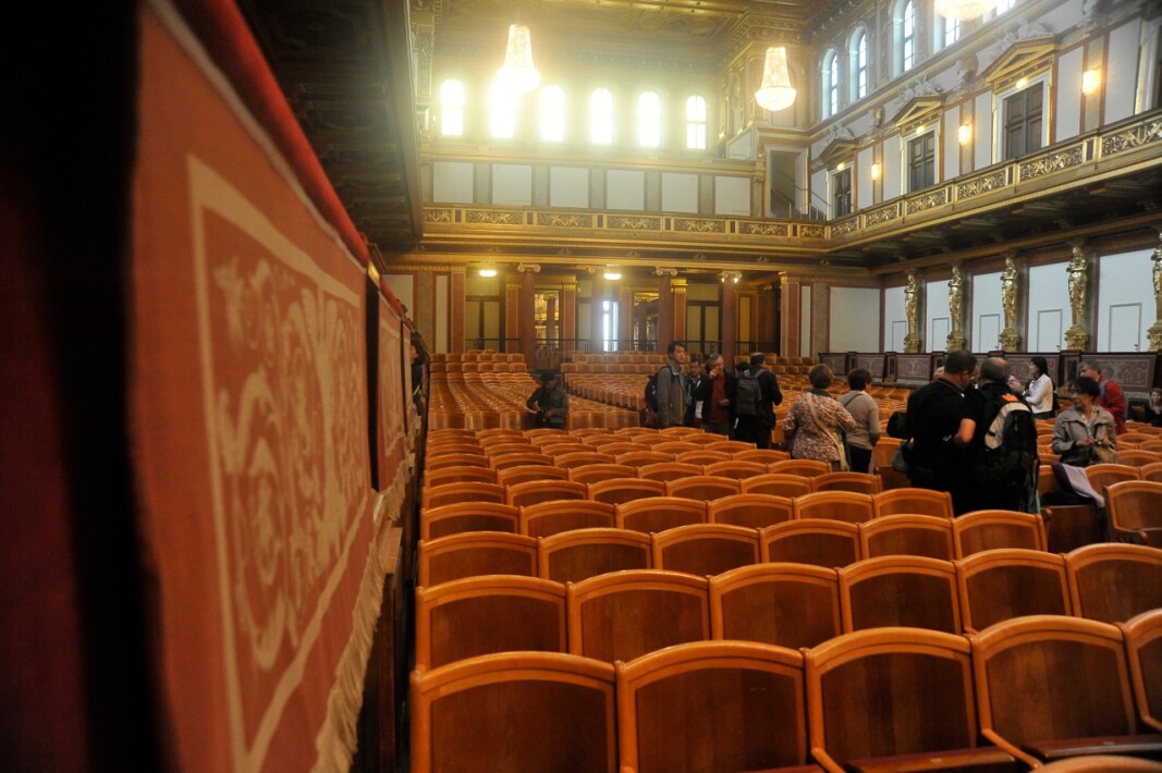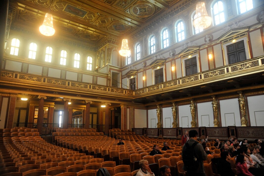 La Goldener Saal (Sala Dorada) de la Musikverein, (Sociedad de la Música, sede de la Filarmónica de Viena) fue junto a otras cosas motivo principal para un viaje reciente. Es obra del arquitecto danés Theophil Hansen, se inauguró en 1870 y como sala de conciertos es única gracias a su impecable acústica y otros asuntos sensibles para los arquitectos. Por ejemplo su volumen interno rigurosamente prismático, su disposición de gran salón con la orquesta integrada a la audiencia y su aceptación de la luz natural que entra por altos ventanales que rodean todo el recinto. El edificio que la alberga contiene también la Sala Brahms para música de cámara y otras salas menores de construcción reciente que conviven sin interferencias de modo que sorprende dada la sencillez del edificio y el reducido tamaño de los vestíbulos y trayectos internos: la cuestión central es la sala misma.