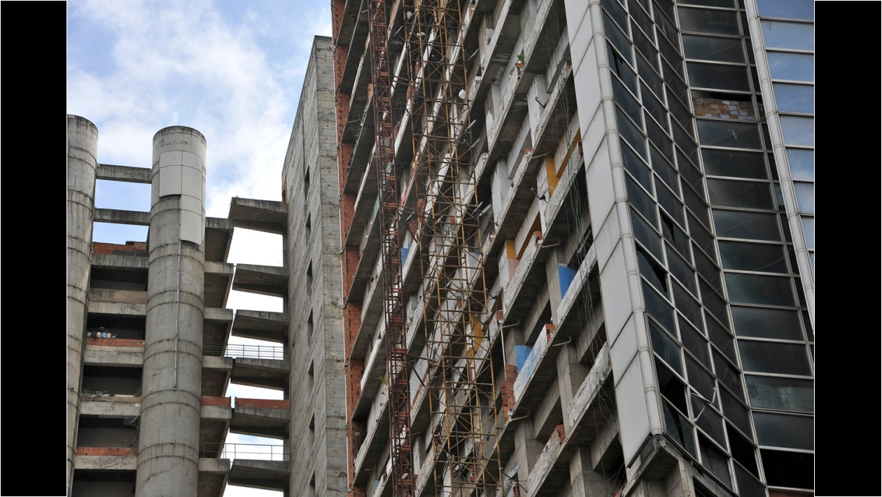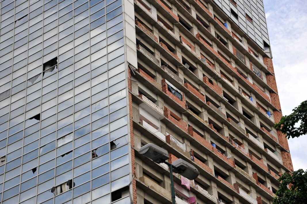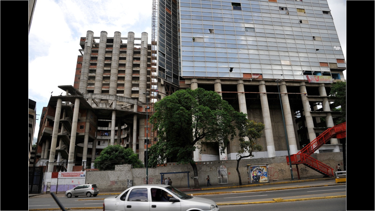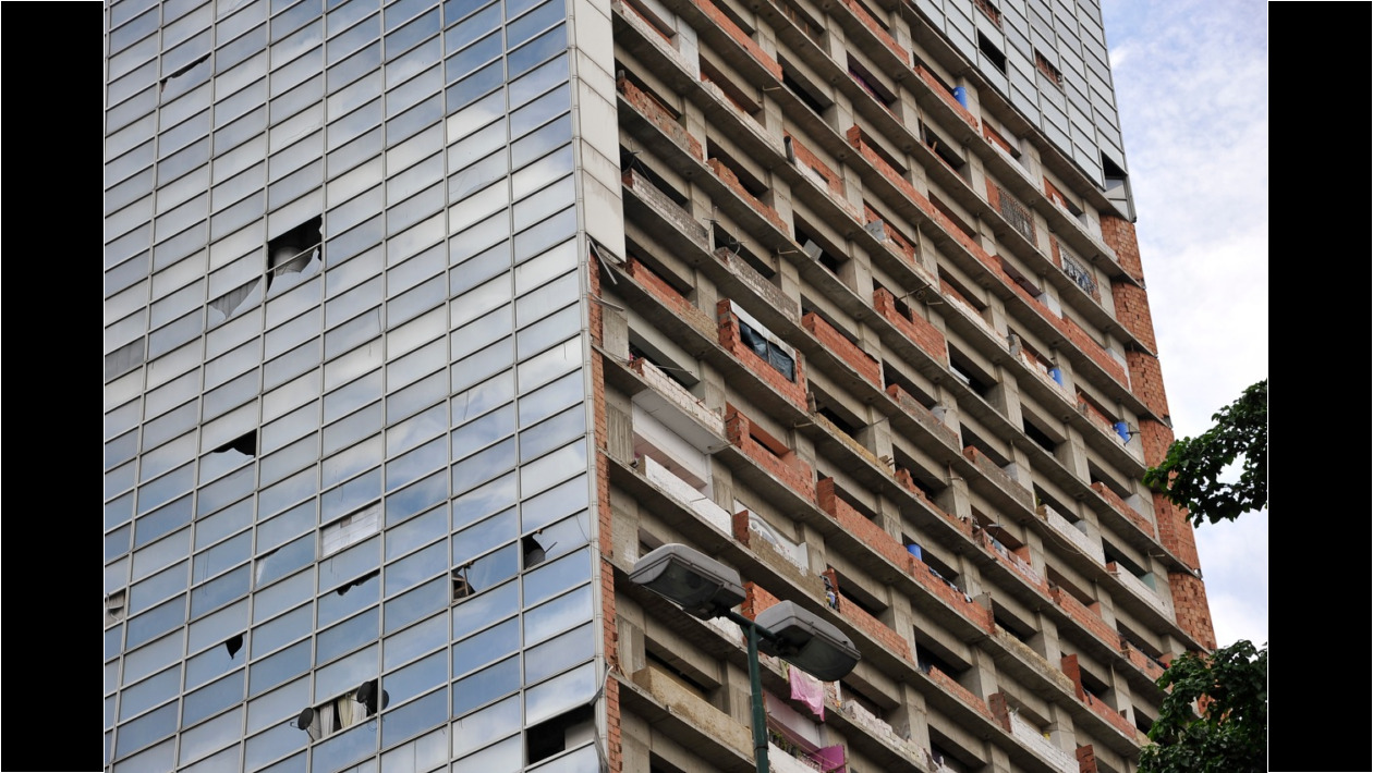 Hasta que hace unos cinco años se produjo lo que desde la autoridad oficial se ha venido promoviendo en toda la extensión de la ciudad: un numeroso grupo de seguidores del Régimen, dirigidos por un célebre personaje, apodado «el niño», quien desde entonces actúa como casero-dueño de la inmensa estructura, consumó una invasión. Comenzaron a aparecer, visibles desde los huecos dejados por el vandalismo en las fachadas, tabiques de arcilla, ventanas improvisadas, ropa colgando a secar. Todas las muestras típicas de las viviendas precarias de nuestros «barrios» marginales. Se ocuparon primero los pisos inferiores y se llegó más allá del piso veinte. El tráfico de personas entrando, saliendo, moviéndose internamente, se hace sorteando huecos para ductos mecánicos y como por supuesto no hay ascensores y las escaleras no tienen barandas, hay permanente riesgo de pavorosos accidentes (niños caídos al vacío) que han ocurrido con frecuencia. Se han improvisado sistemas de agua y drenajes de aguas negras que revelan, si uno alcanza a superar el estupor ante este descarnado manifiesto de explotación de la miseria, el ingenio típico de todo esfuerzo de supervivencia.
