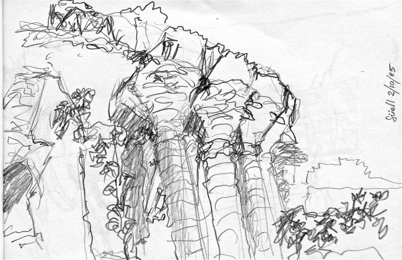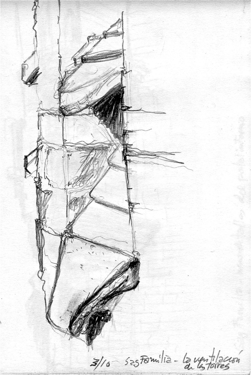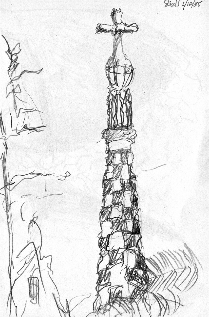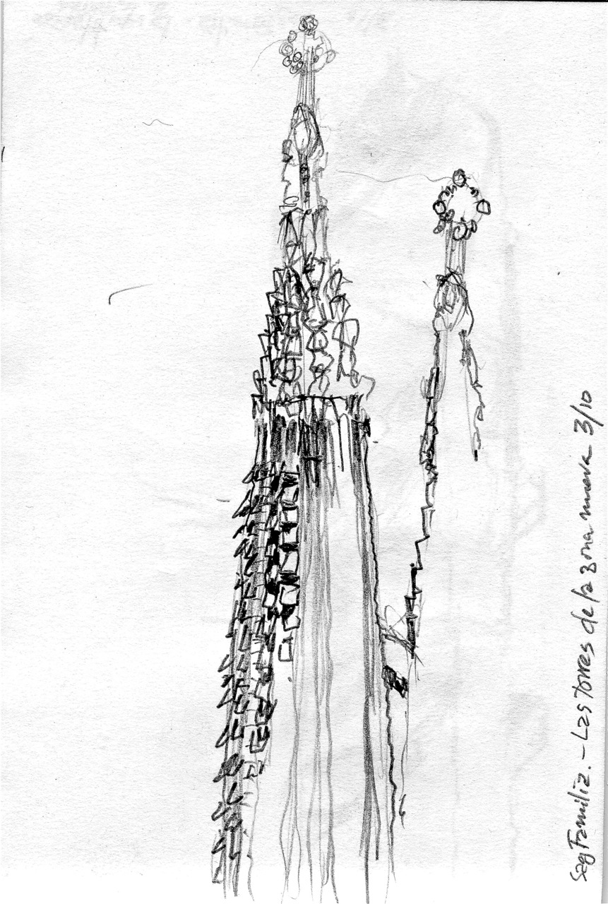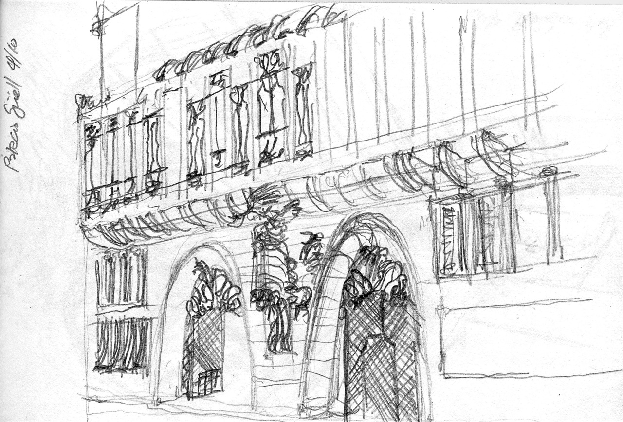 Siguen dibujos hechos en El Parque Güell, el Palacio Gùell y la Sagrada Familia, en 1985, por quien esto escribe. En lápiz 11 x 8 cm. También fotos de obras de Frank Gehry.