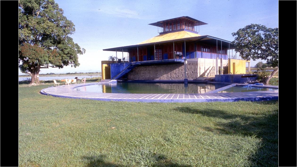 Cuando veo el noble perfil de la casa y me adentro un poco en los aspectos menos aparentes, no puedo dejar de decir que veo en ella una muestra –que repito me conmueve– de ciertas figuras que tienen condición arquetípica, surgidas de la acción del hombre como constructor a lo largo del tiempo y sin embargo siempre presentes como imagen que nos alcanza en este mundo tropical: el techo que se muestra claramente, el corredor que ofrece la sombra, la construcción como origen, las texturas y los colores minerales…y muchas otras cosas. Recuerdo entre todas ellas el punto, que fue de partida,que le propuse a Carolina: construir un cuadrado de piedra ciclópea que recibiría la tierra sacada para la piscina y a la vez serviría de fundamento para una estructura híbrida –madera y acero sobre una losa de concreto apoyada en la piedra. De allí surgirían todas las consideraciones de diseño posteriores que pueden observarse en las plantas y en los cortes que debo suponer que Carolina conservó.